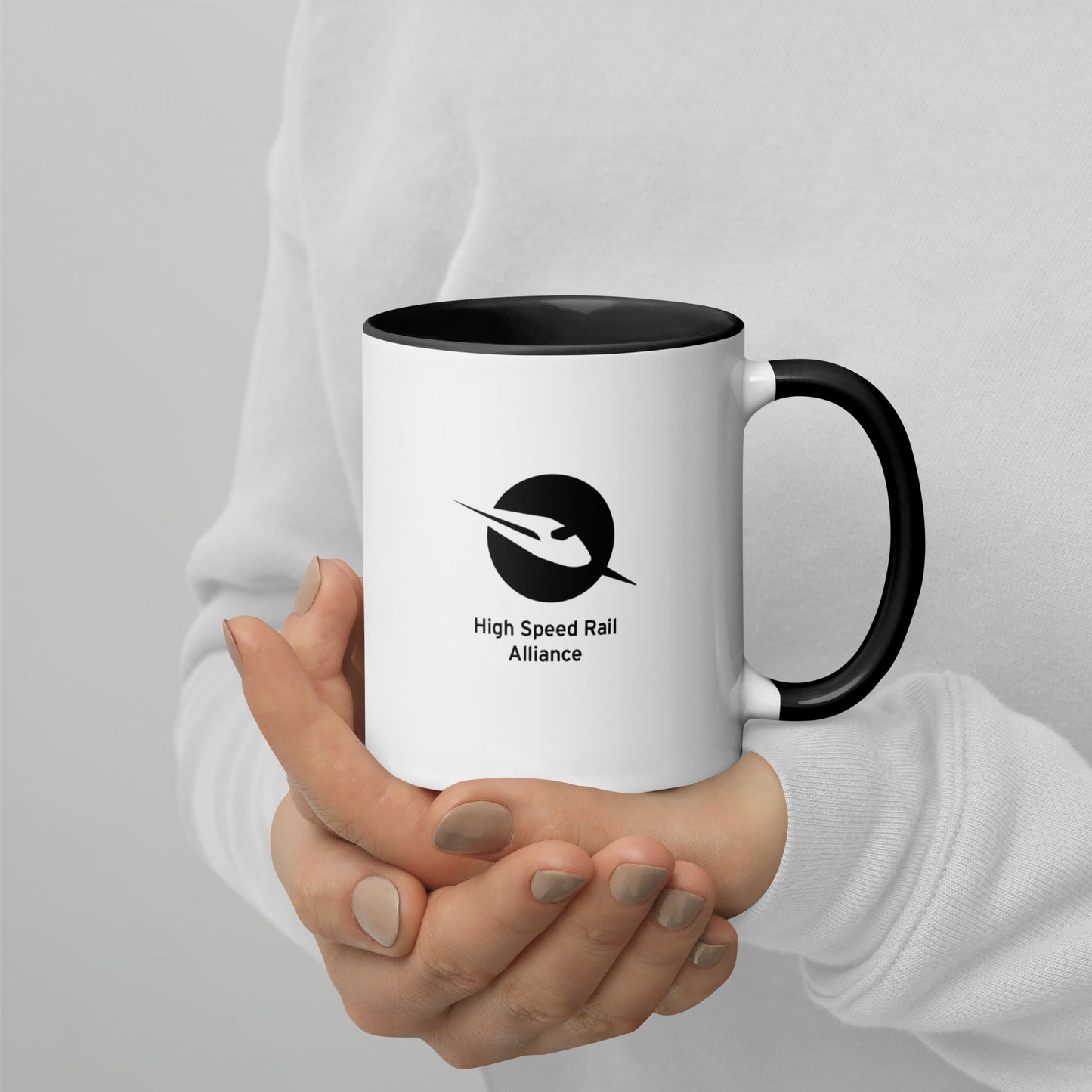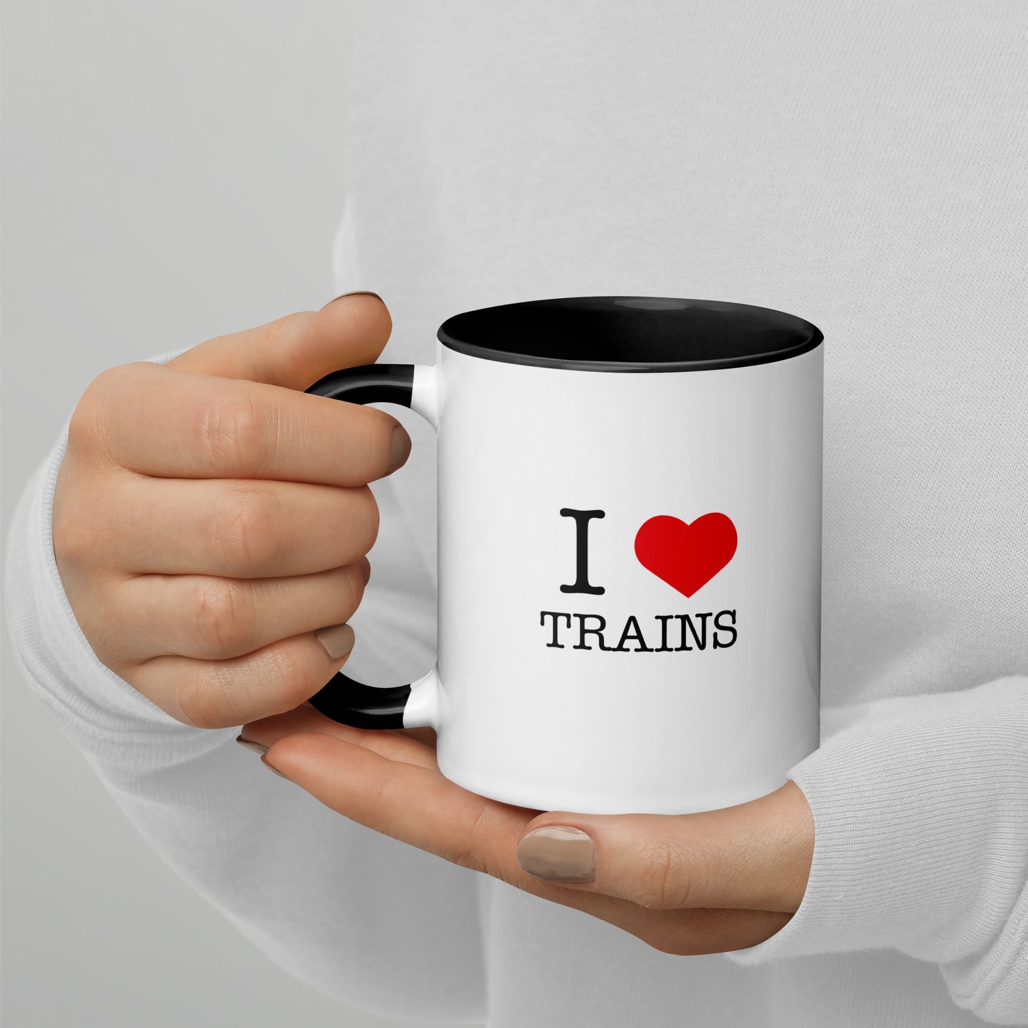 Add a splash of color to your morning coffee or tea ritual with this "I ♥ Trains" mug! These ceramic mugs feature a vibrant design, along with a colorful rim, handle, and interior, making them a charming addition to your mug collection.